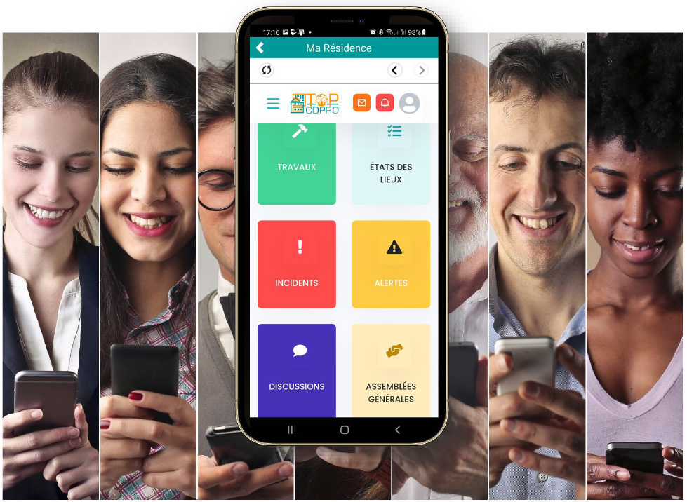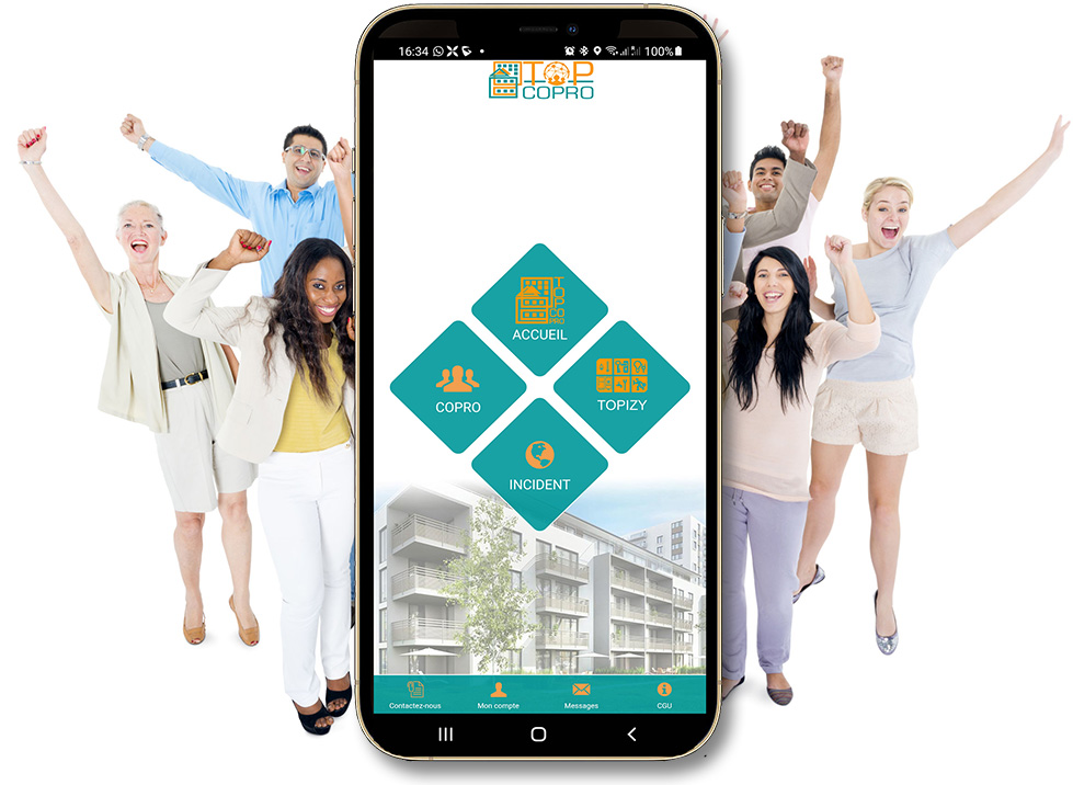 L’application mobile TopCopro centralise toutes les informations utiles et vous permet d’entrer simplement en contact avec votre gestionnaire. Signalez rapidement un incident technique avec un commentaire et des photos. Suivez les interventions et restez informés de l’avancée des travaux.